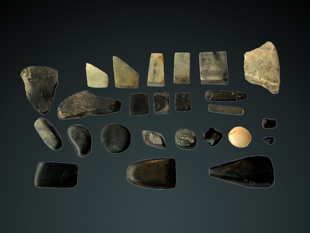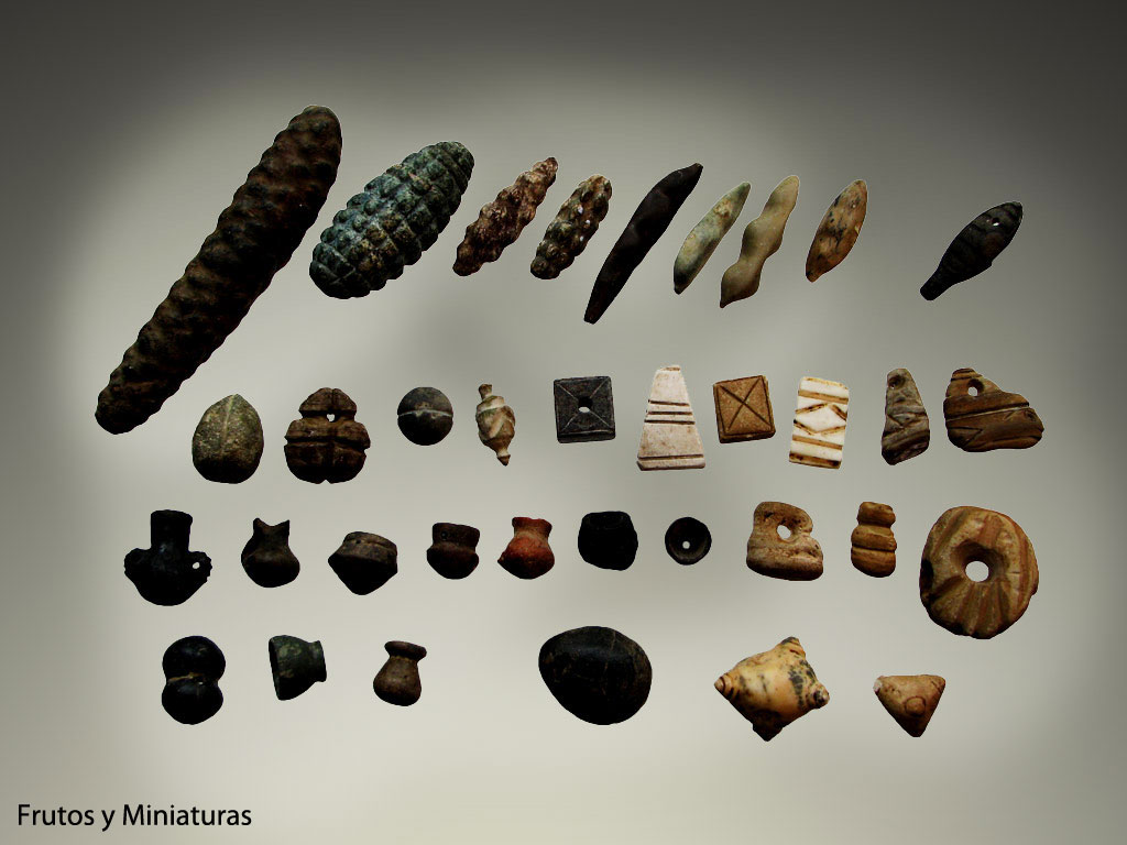 Entre éstos encontramos: instrumentos utilizados para el desarrollo de labores de subsistencia: puntas de proyectil, cuchillos, raspadores, hachas, azadas, morteros, batanes, percutores, entre otros; instrumentos utilizados para la manufactura de objetos de cerámica, de piezas de metal, madera y concha tales como pulidores, tas, martillos, embutidores, repujadores, perforadores, etc.; artefactos líticos correspondientes a objetos bélicos tales como boleadoras, cabezas de porras y mazos; así como instrumentos utilizados para elaborar objetos de arte que posiblemente formaron parte de eventos rituales tales como recipientes finamente labrados con imágenes de seres mitológicos, cuentas de collar, esculturas de animales y plantas, cabezas de porras, entre otros y esculturas de deidades que ornamentaban templos y centros ceremoniales.