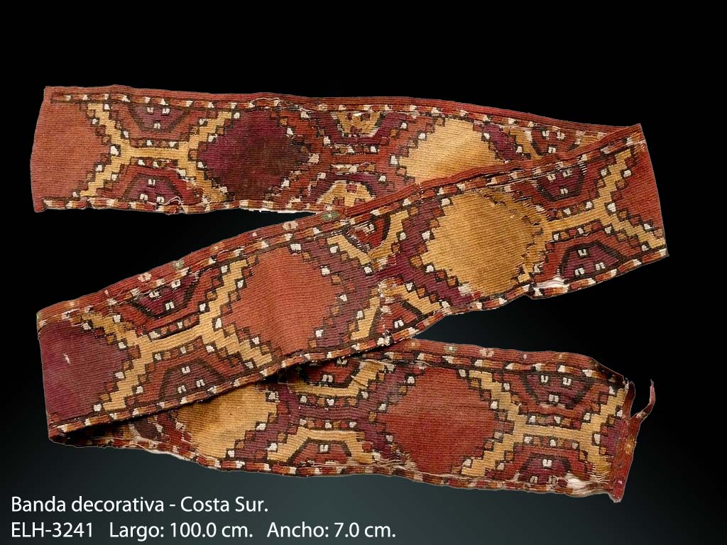 Los textiles prehispánicos han sido siempre un patrimonio importante del antiguo Perú, los cuales hemos llegado a conocer a través de diversas maneras y estudios realizados por especialistas del tema; lo más importante que podemos establecer no solamente es que éste material siguió una trayectoria evolutiva y compleja a través de las diversas culturas que se desarrollaron en nuestro territorio, sino también, los recursos naturales que se utilizaron para su estructuración, tales como las fibras vegetales y animales, las diversas técnicas constructivas que realizaron, así como las diversas funciones o formas que elaboraron al componer el tejido y la rica iconografía que revelaba la cosmovisión de cada uno de los pueblos.