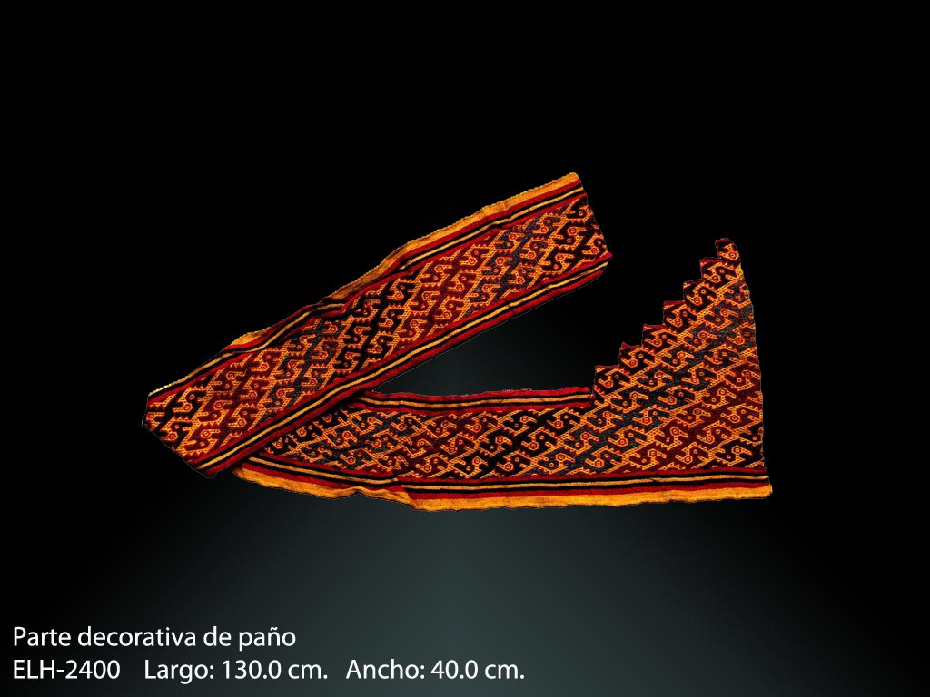 En la actualidad, este legado histórico lo apreciamos en una muestra de un museo, una publicación o como la modernidad nos incluye a través del recorrido de una página de internet; Es por ello, que a través de este texto me permito mostrar las características de una importante colección textil como es la del Sr. Ernesto Leistenscneider, persona reconocida en nuestro medio por que ya forma parte de nuestra historia contemporánea y lo hizo desde el momento en que llegó a este territorio hace aproximadamente 50 años y quedo prendado de todo lo que en ese entonces vivía el Perú, así como de su acervo cultural, tal vez esa fue la razón por la cual sensibilizado ante el inescrupuloso comercio que se realizaba con el patrimonio nacional, pensó en recaudar lo más que podía como una forma de proteger y preservarlo. En esta importante colección podemos establecer un recorrido cronológico identificado por cada una de las piezas que lo componen, así podemos ver desde una pequeña tela pintada del período Formativo hasta variadas prendas Incas. Asimismo, las más hermosas y complejas son un vestuario de época Chimú compuesta por una camisa y una bolsa que aún lleva el contenido de herramientas y materia prima o de los delicados paños recamados en plumas de variados colores. Visitemos entonces virtualmente esta variada e importante colección que ya forma parte de nuestra historia.